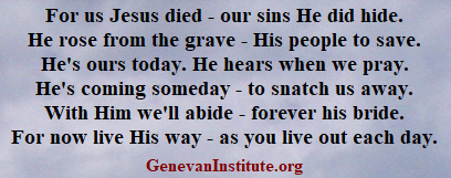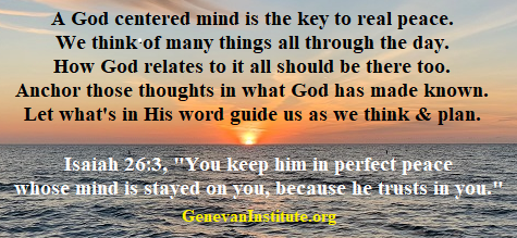 The Genevan Institute for Reformed Studies was founded in 1993 to continue that practice in our own period of history. Our desire is to apply God’s word to our own lives and to the world around us. Our goal is to reform (reshape) our lives to fit the mold that our Creator has given us in his written word.